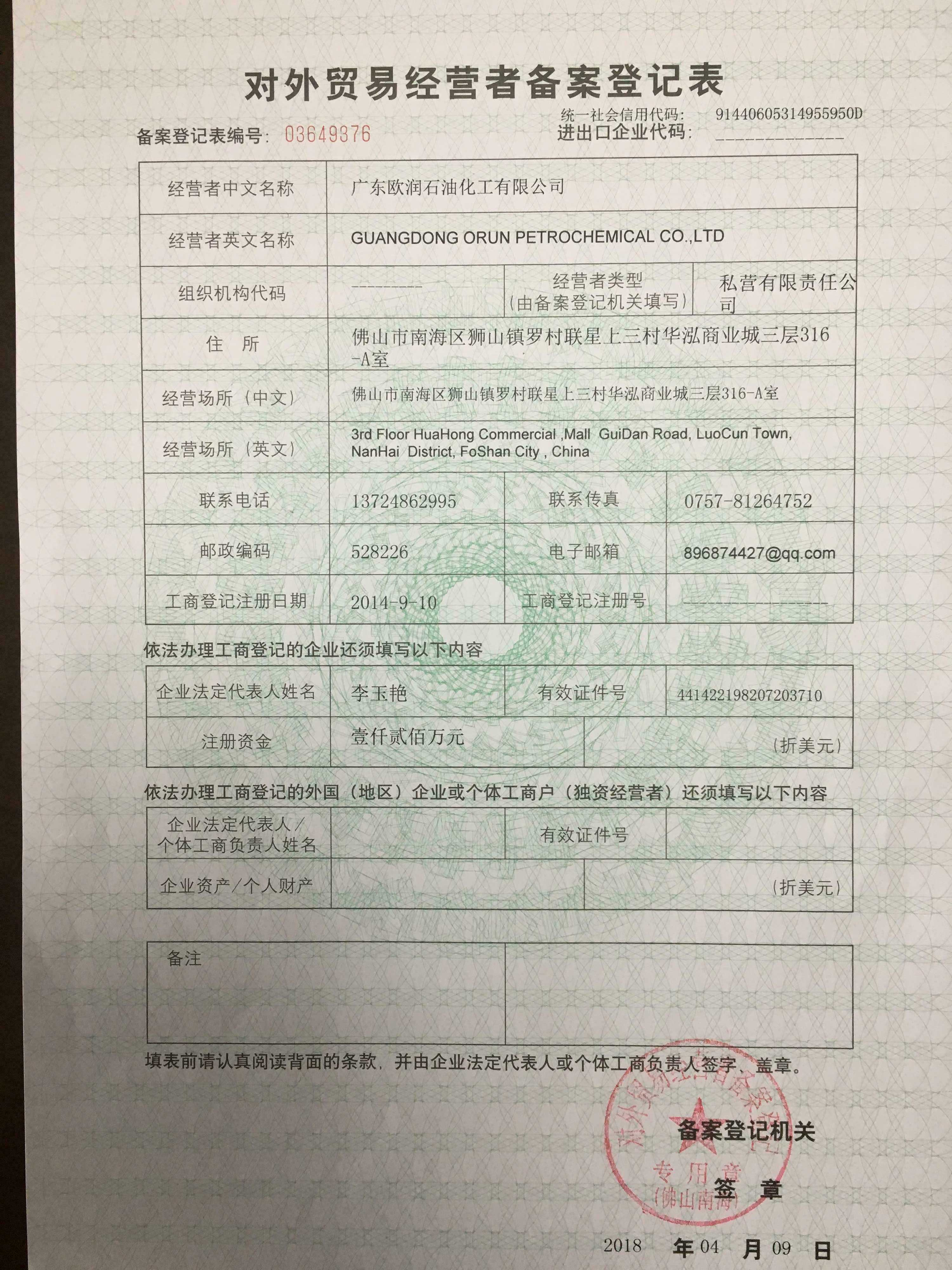 對(duì)外貿(mào)易經(jīng)營(yíng)者備案登記表